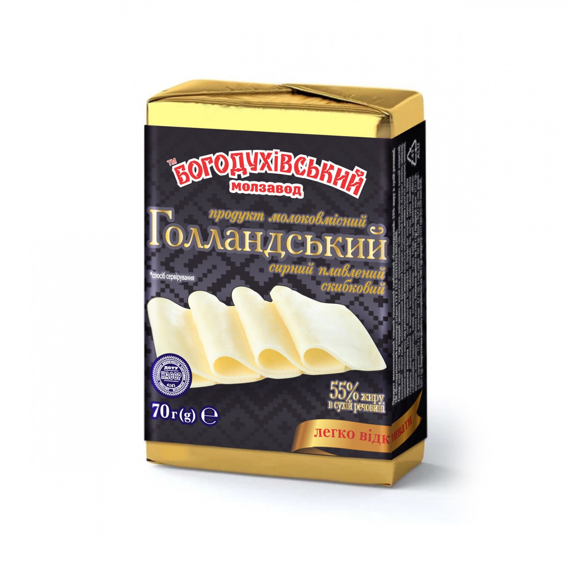 Продукт молоковмісний сирний плавлений скибковий "Голландський" 55% жиру, ТМ "Богодухівський молзавод" 15,00 грн. 0,00 грн.