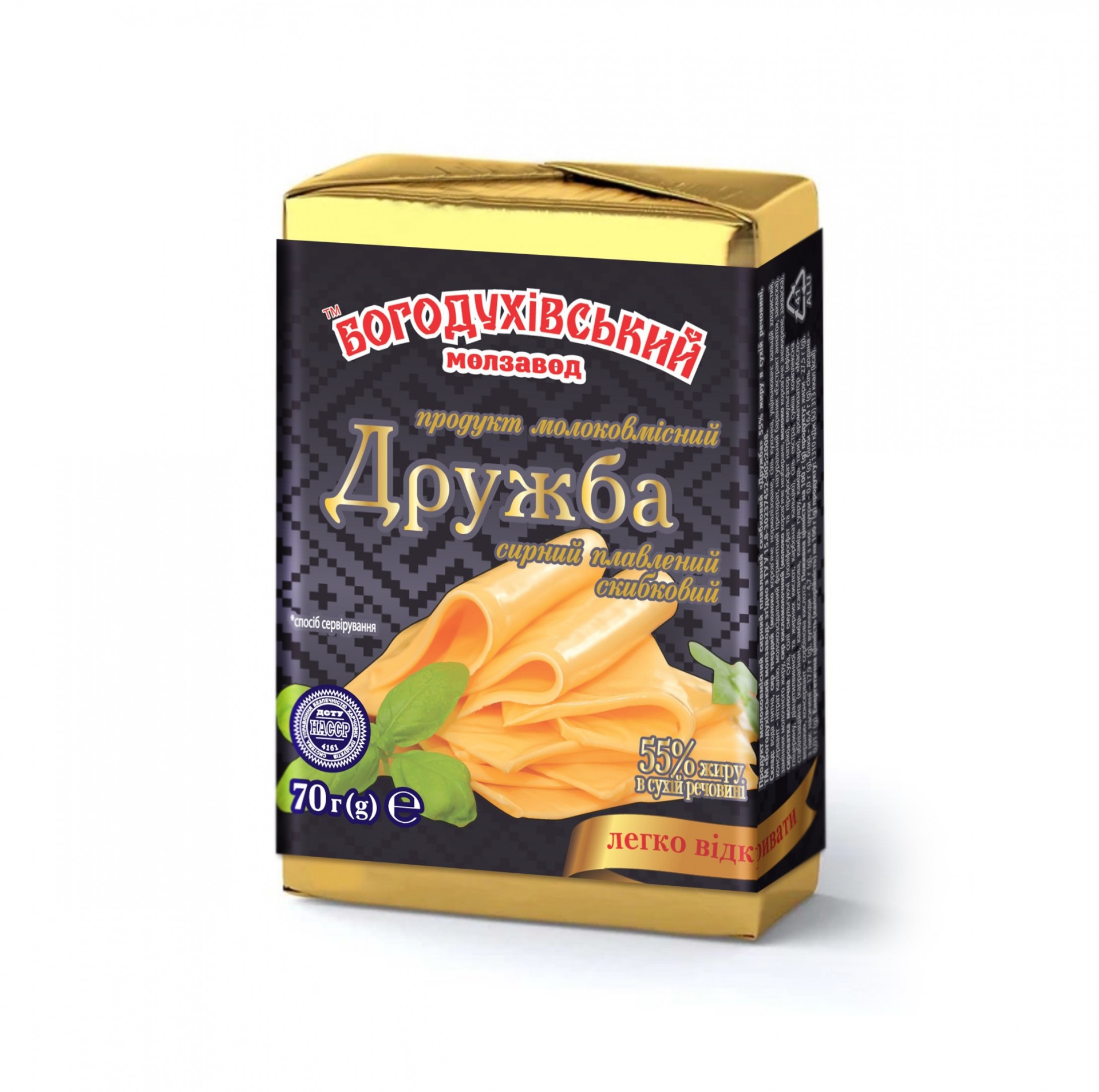 Продукт молоковмісний сирний плавлений скибковий "Дружба" 55% жиру, ТМ "Богодухівський молзавод" 15,00 грн. 0,00 грн.